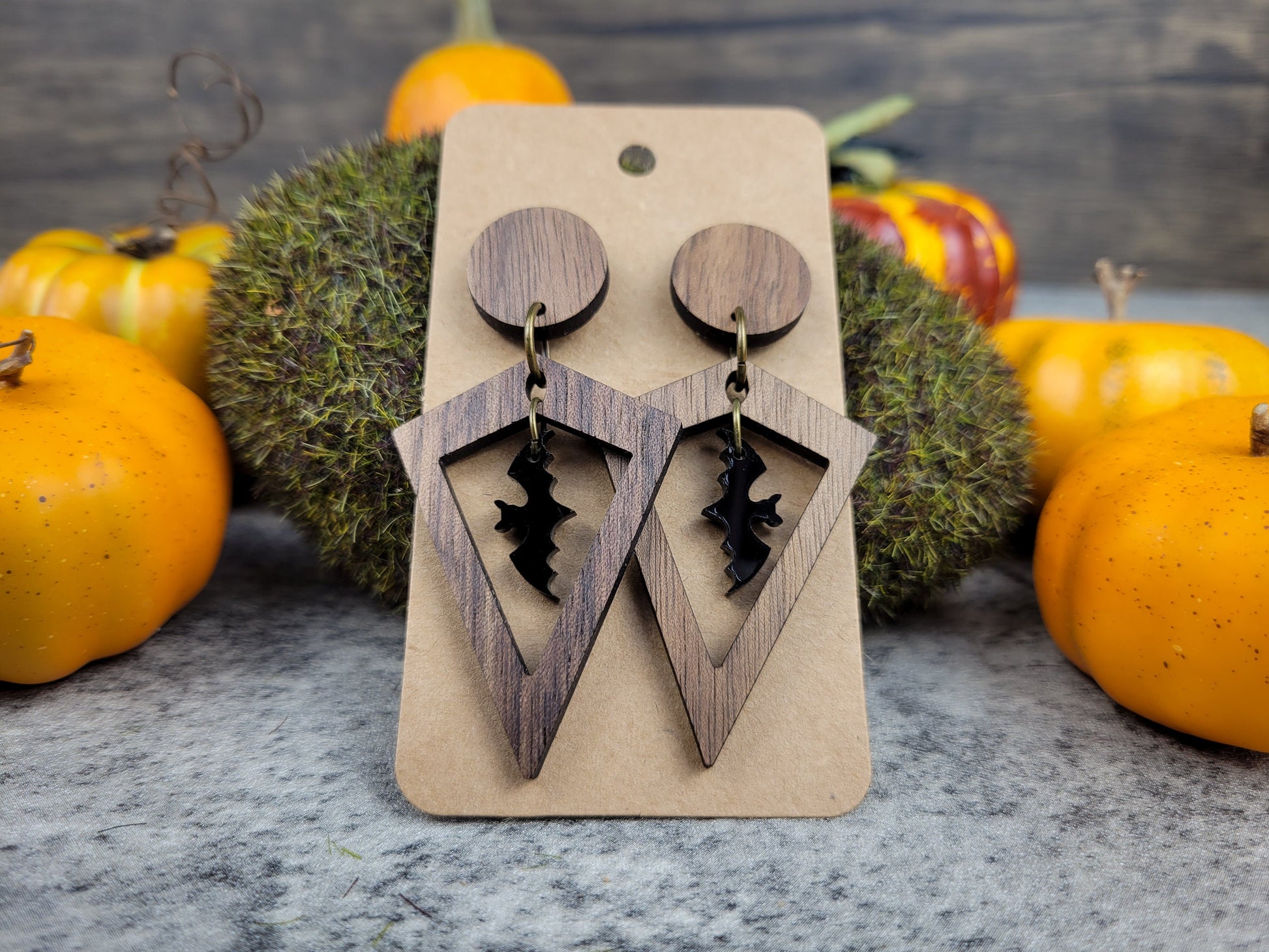Bat Dangle Earrings — Black Acrylic Halloween Jewelry