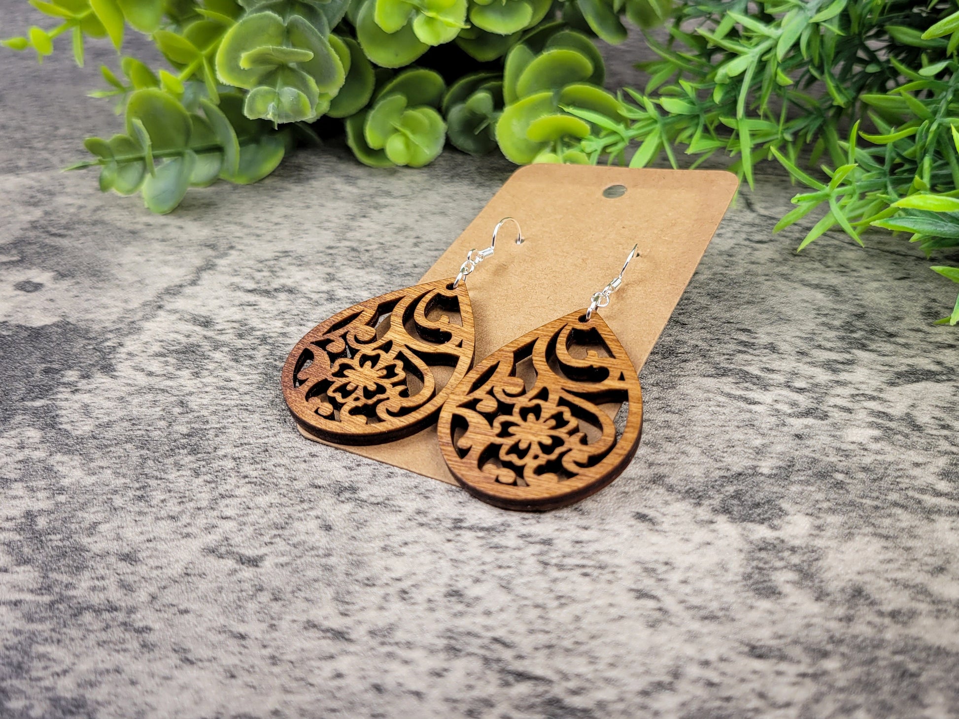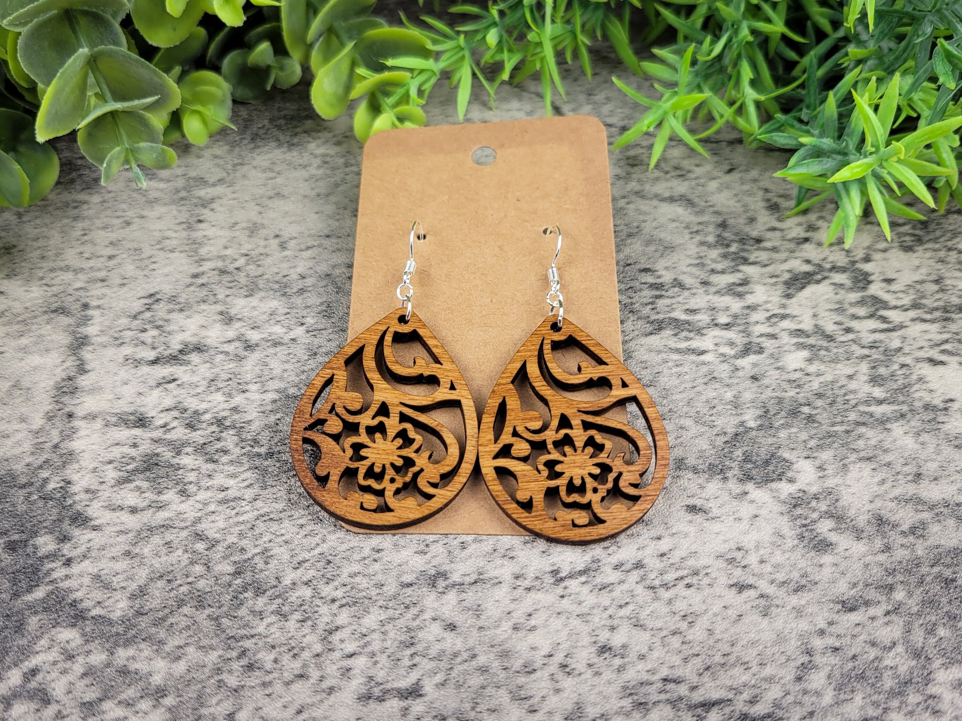 Cherry Blossom Teardrop Earrings – Birch Wood Floral Dangles