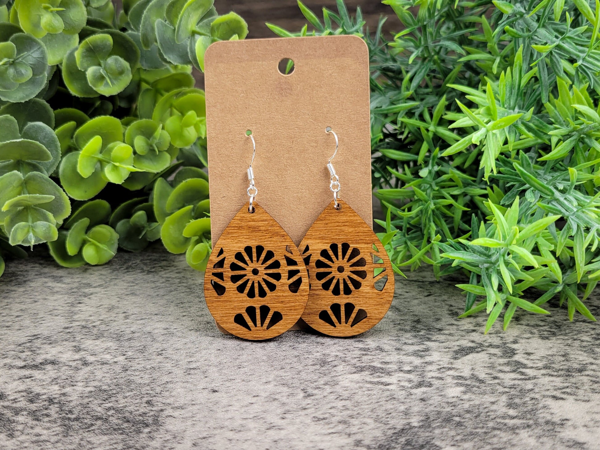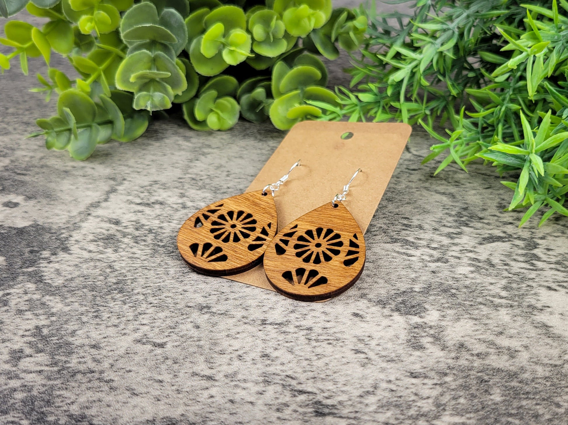 Daisy Teardrop Earrings – Birch Wood Floral Dangles