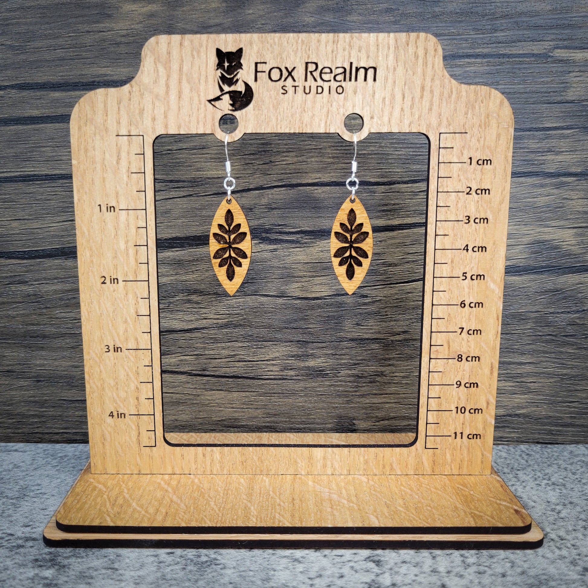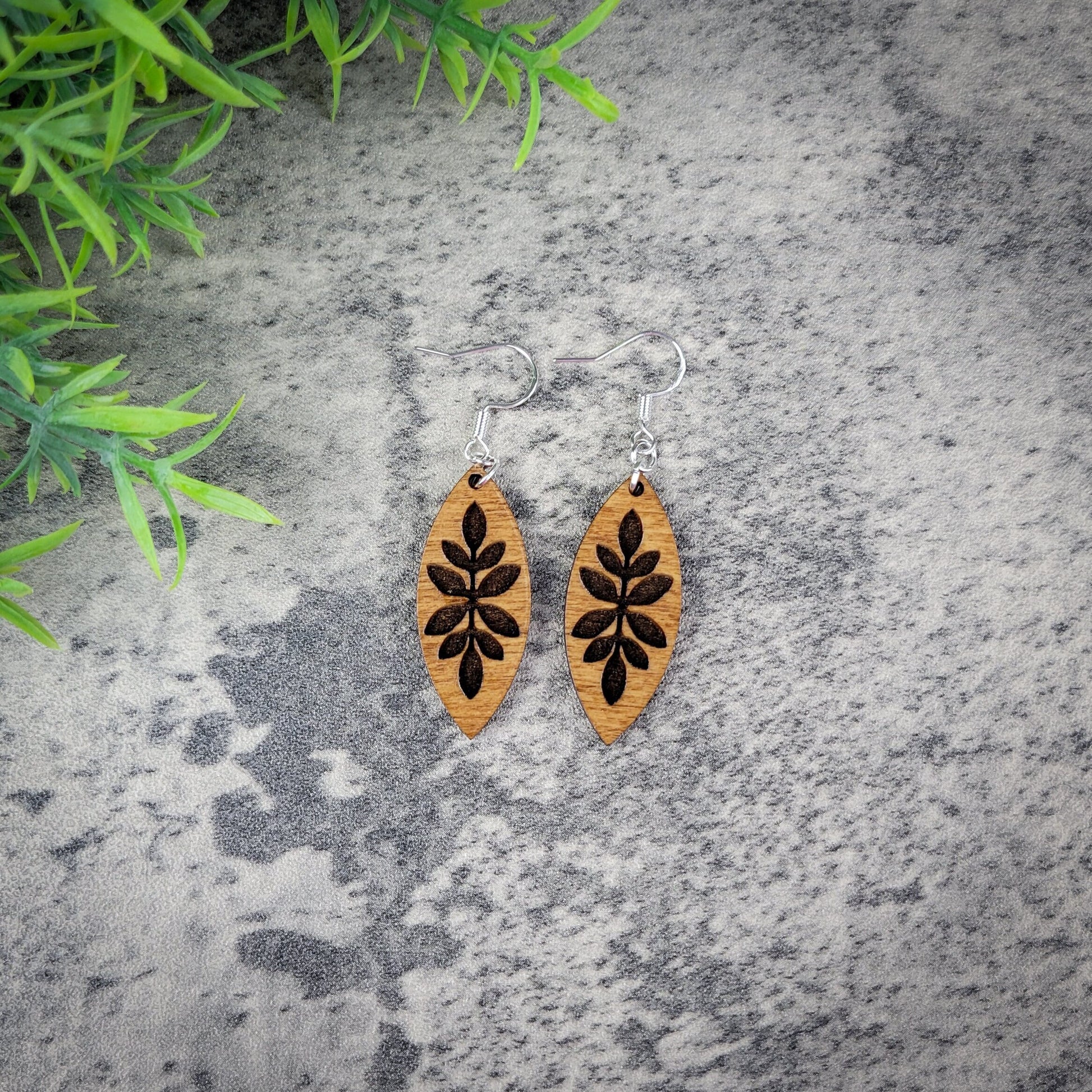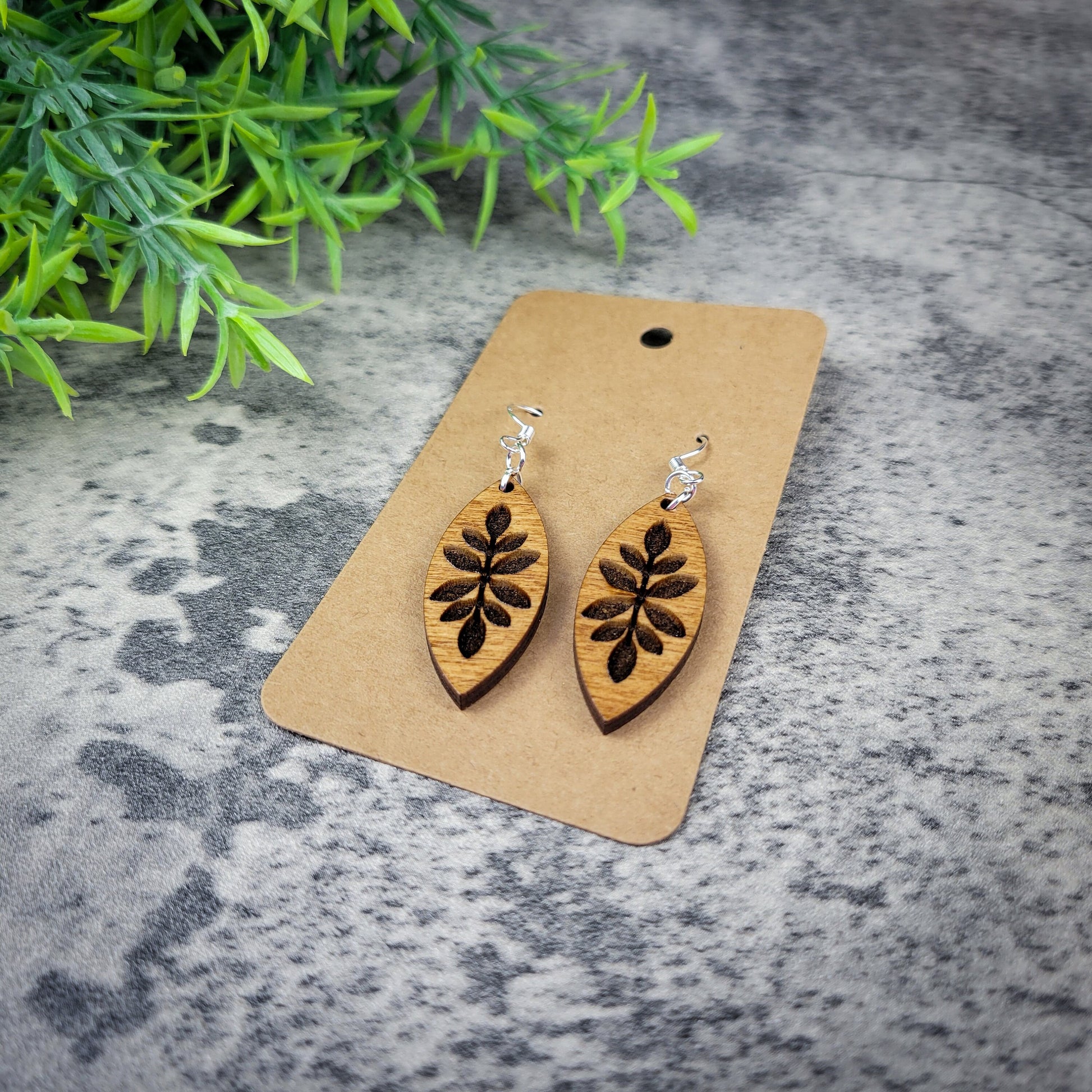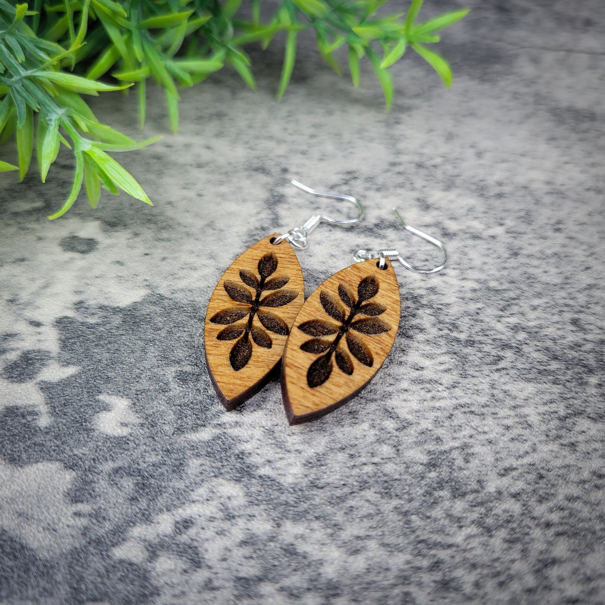 Engraved Wooden Leaf Dangle Earrings – Birch Wood Etched Jewelry
