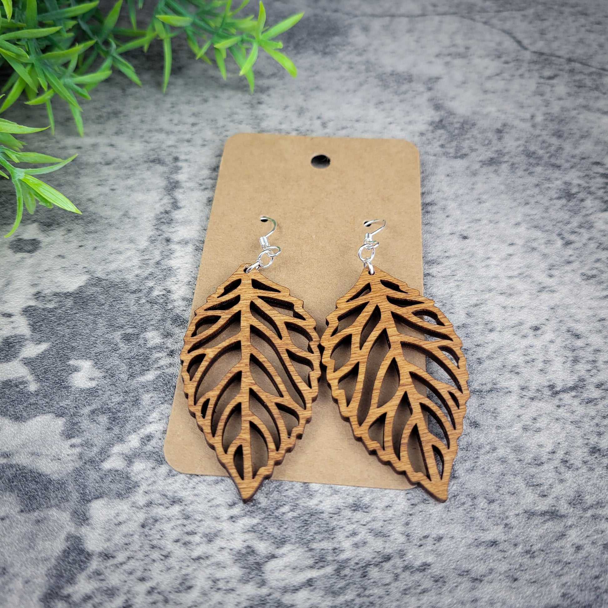 Wooden Leaf Dangle Earrings – Birch Wood Autumn Jewelry