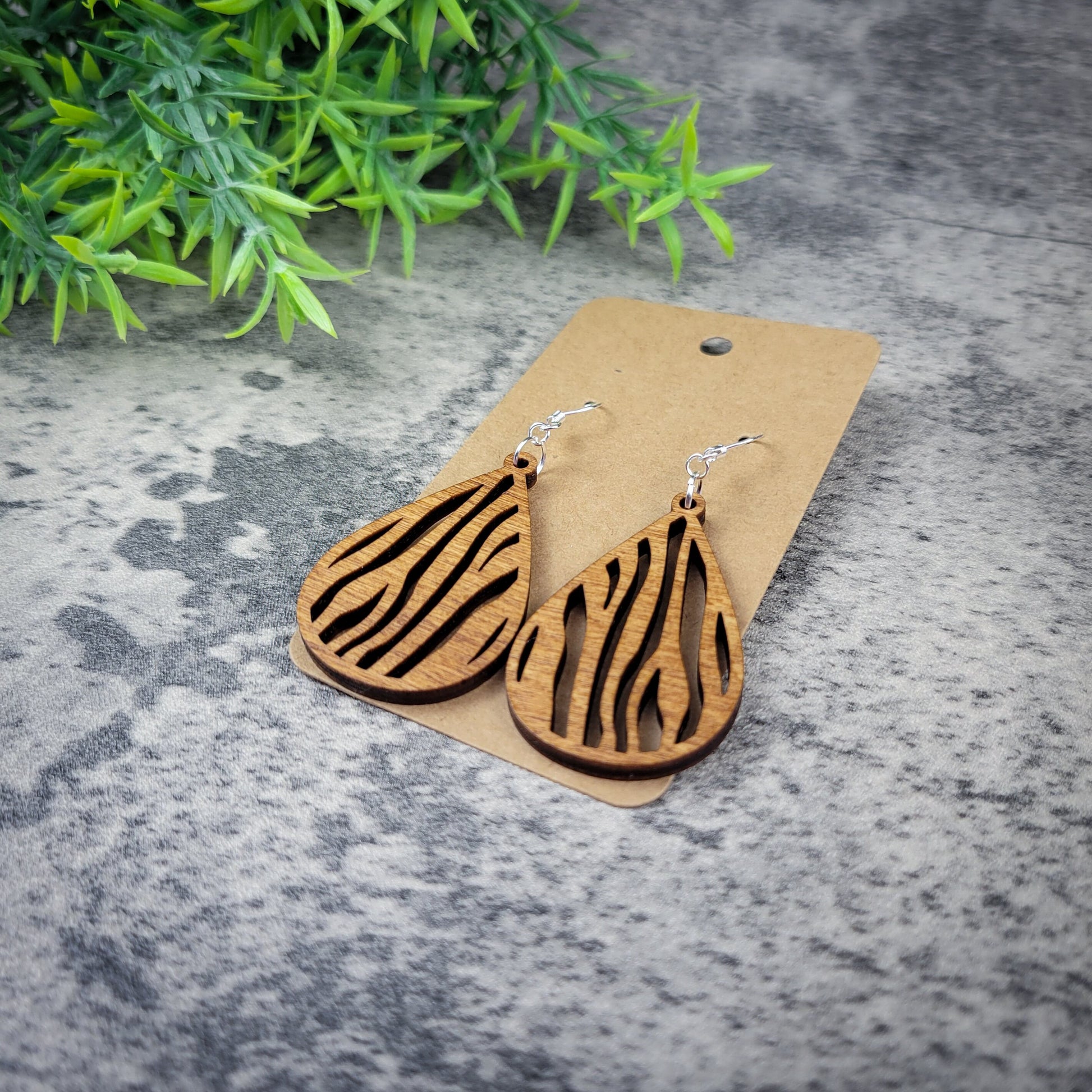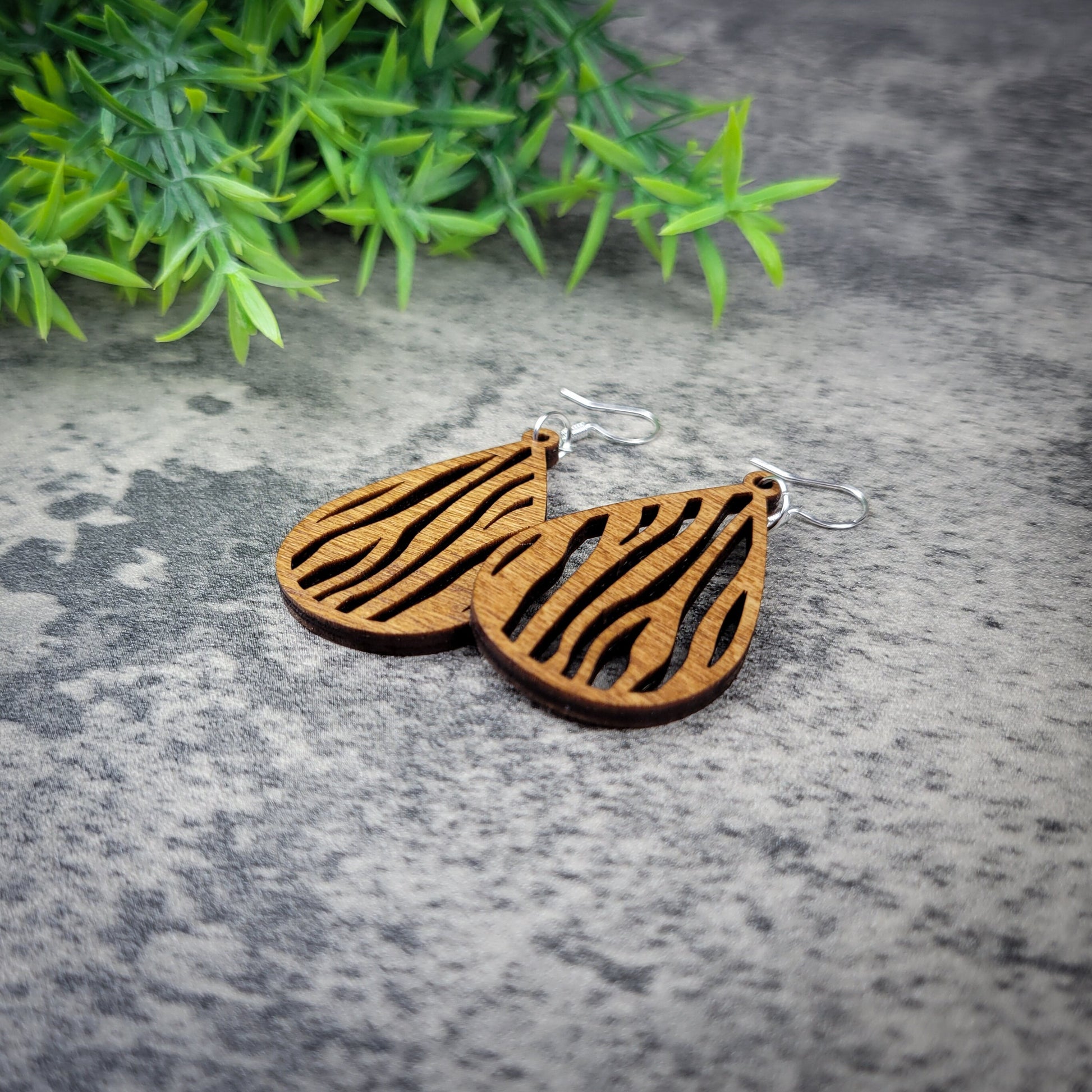 Zebra Striped Dangle Earrings – Bold Birch Wood Boho Jewelry